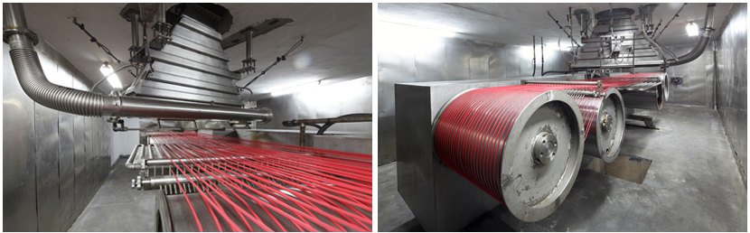 南洋電纜有限公司具有兩條國際領先水平AB型高頻高壓電子加速器,用電子加速器輻照電線電纜是輻照加工的重要領域,它集結電子技術、高能核物理技術、真空技術、計算機技術、輻照化學技術和電線電纜制造技術于一體,是當今高新技術的榜樣。由電子加速器產生的高能電子束,作用在聚合物內部,使聚合物的分子結構產生顯著的改變,由原本的線性變成不溶不熔的三維網(wǎng)狀結構,從而使材料具有特別的耐熱性、耐化學性、耐輻照性、高阻燃性、高強度性。